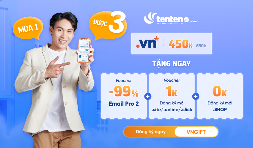 [Tháng 10_Khách lẻ] Tên miền .VN/ .COM.VN/.COM/.NET 0 đồng, tặng 6 tháng khi đăng ký hosting/ email server và nhiều ưu đãi khác