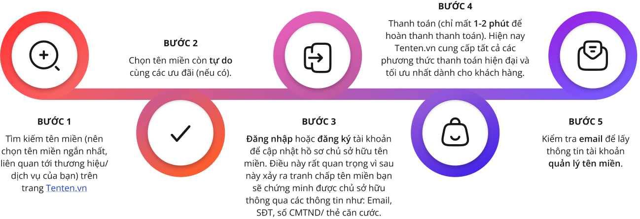 Bước 1Tìm kiếm tên miền (nên chọn tên miền ngắn nhất, liên quan tới thương hiệu/dịch vụ của bạn) trên trang Tenten.vn